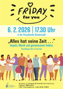 Dazu gibt es einen Impuls, Musik und einen gemeinsamen Imbiss.