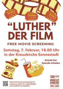 Im Rahmen einer regionalen Kulturbühne wird der Film „Luther“ auf einer Großbildleinwand gezeigt, begleitet von Gesprächen und Impulsen rund um Reformation, Verantwortung und Zeitgeist.